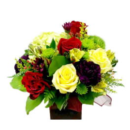 Price: $109.99 1 dozen red roses with lilies, alstroemeria and snapdragons B Product Tags: Same-day Delivery